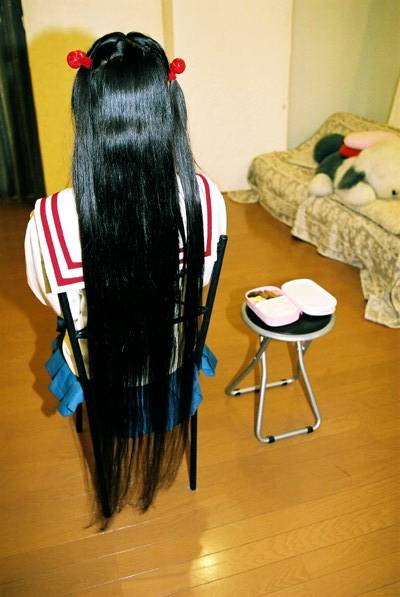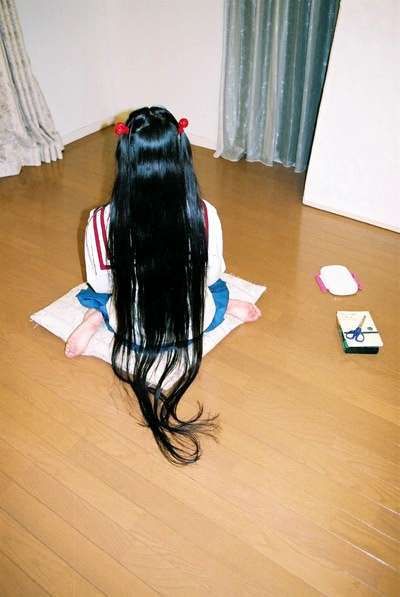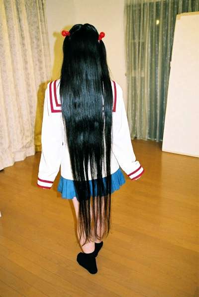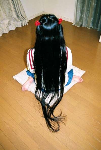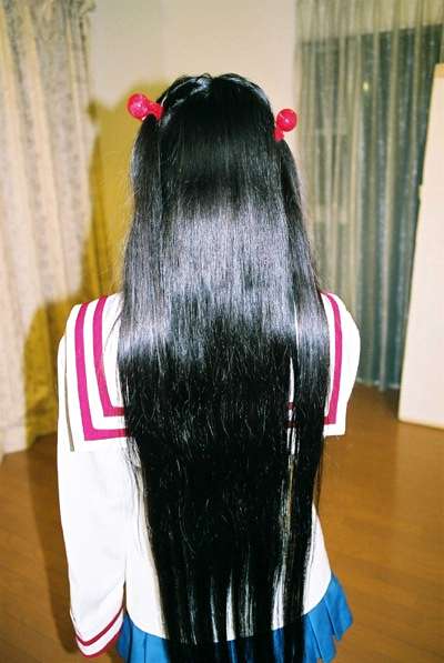 両サイドを髪飾りで結んでいるので、毛先の方の量が少ないですが、