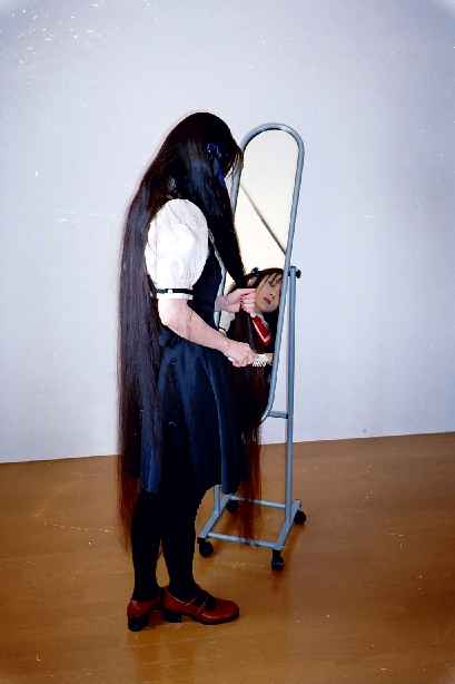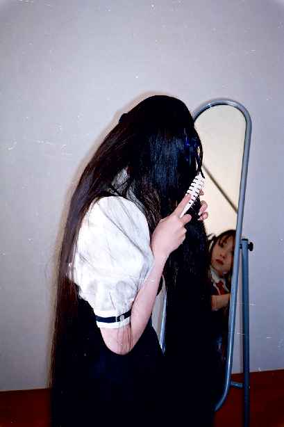 撮影室に鏡があったので、長い髪を生かして