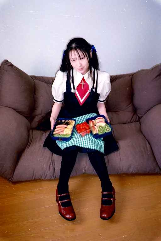 お弁当を持たせての撮影です。