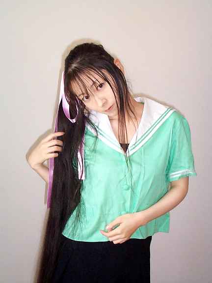 ご覧の通り、膝までの長い黒髪です。