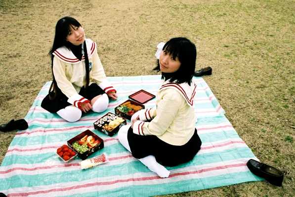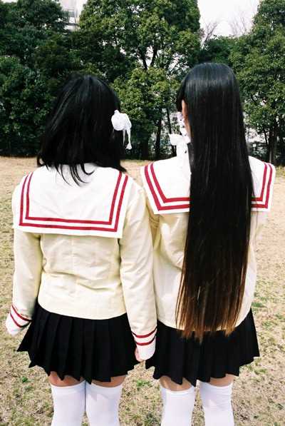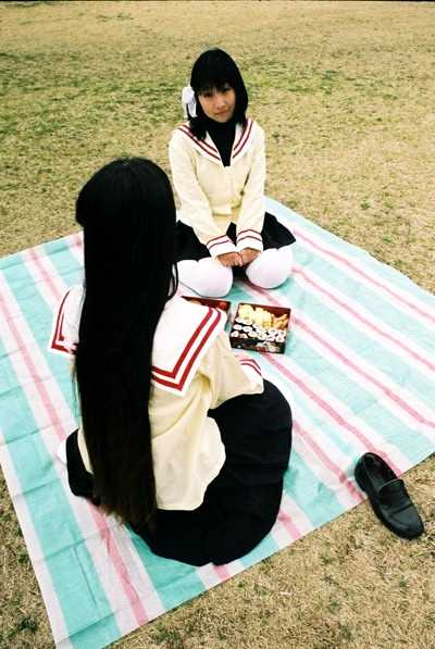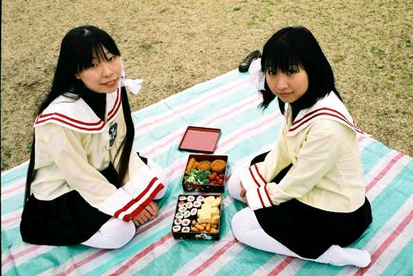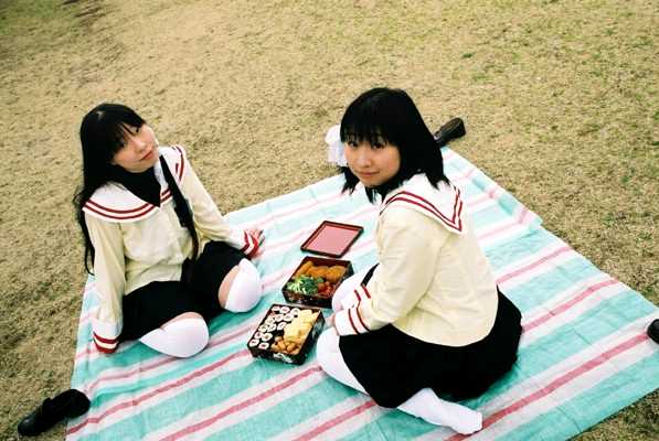 双子の姉妹・ニーソ・手作り重箱弁当・超ロングヘア+おかっぱと